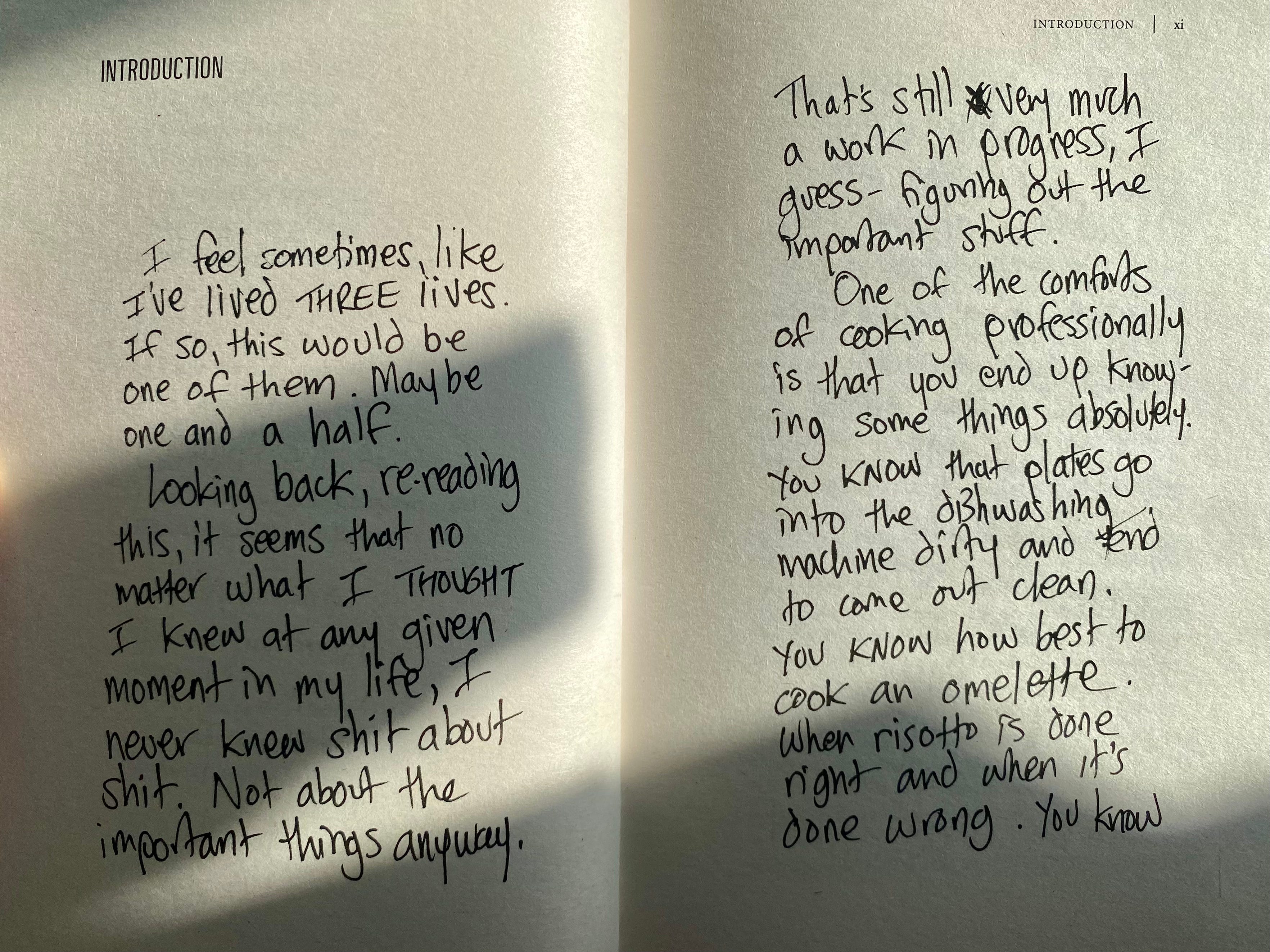 That was in 2012, six years before he died. When Bourdain wrote Kitchen Confidential in 2000 he’d already been a chef for nearly two decades. At the time of the reissue he spoke like a veteran, anticipating the slowdown of his career. Parts Unknown hadn’t even come out yet. He sounds hopeful in his notes. When I think of him now I go back to then: one divorce in, a new father, grateful for his life. He also makes a great point about being allowed to change your mind after sticking to your guns so fervently they basically give you an American passport. You can, apparently, evolve without apologizing for it. I keep falling asleep with the book by my pillow; maybe acceptance can be learned through osmosis.